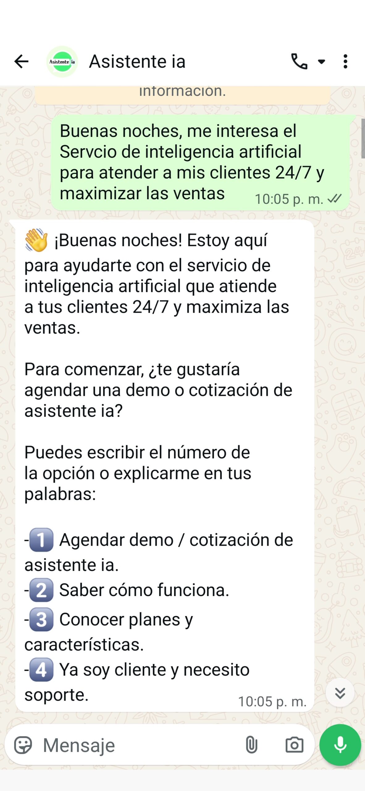 Ten un asistente ia 24/7 inmediato en WhatsApp, siempre con un excelente animo atenderá a todos tus clientes.